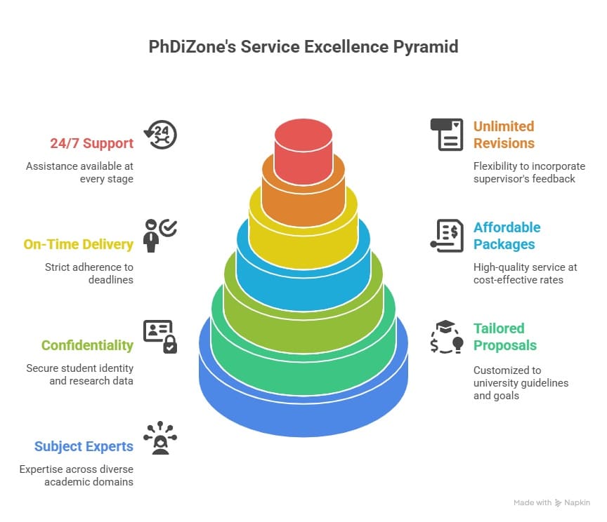 PhDiZone offers expert guidance, plagiarism-free writing, timely delivery, and end-to-end academic support, ensuring higher acceptance rates for your dissertation proposal.